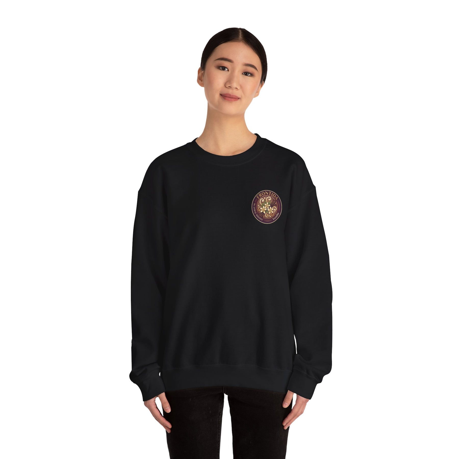 This crewneck sweatshirt is built around Frontida’s understated identity — a balance of warmth, symbolism, and everyday durability. The clean front is anchored by the circular Frontida emblem, a seal-like mark that feels timeless and intentional, while the back carries the bold Frontida name paired with the signature monogram, giving the piece presence from every angle. It’s designed to feel familiar the moment you put it on: soft yet structured, relaxed without losing shape, and sturdy enough to become part of your daily rotation. The smooth, seam-free construction keeps the silhouette clean, letting the branding speak quietly rather than loudly. Whether worn on its own or layered, this sweatshirt reflects a calm confidence and a brand story rooted in quality, care, and longevity.