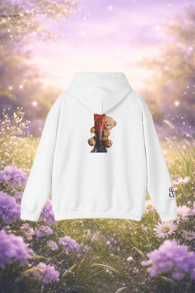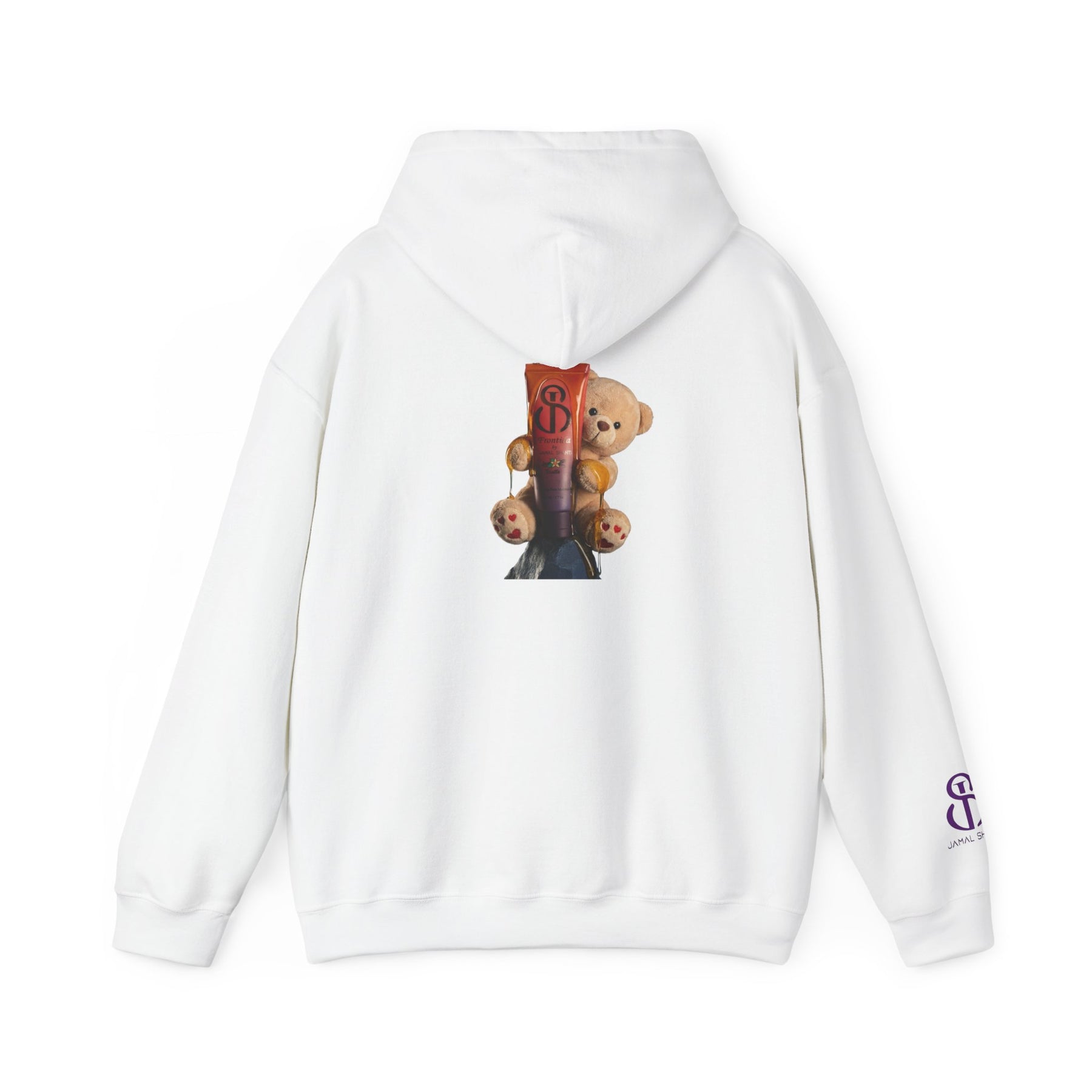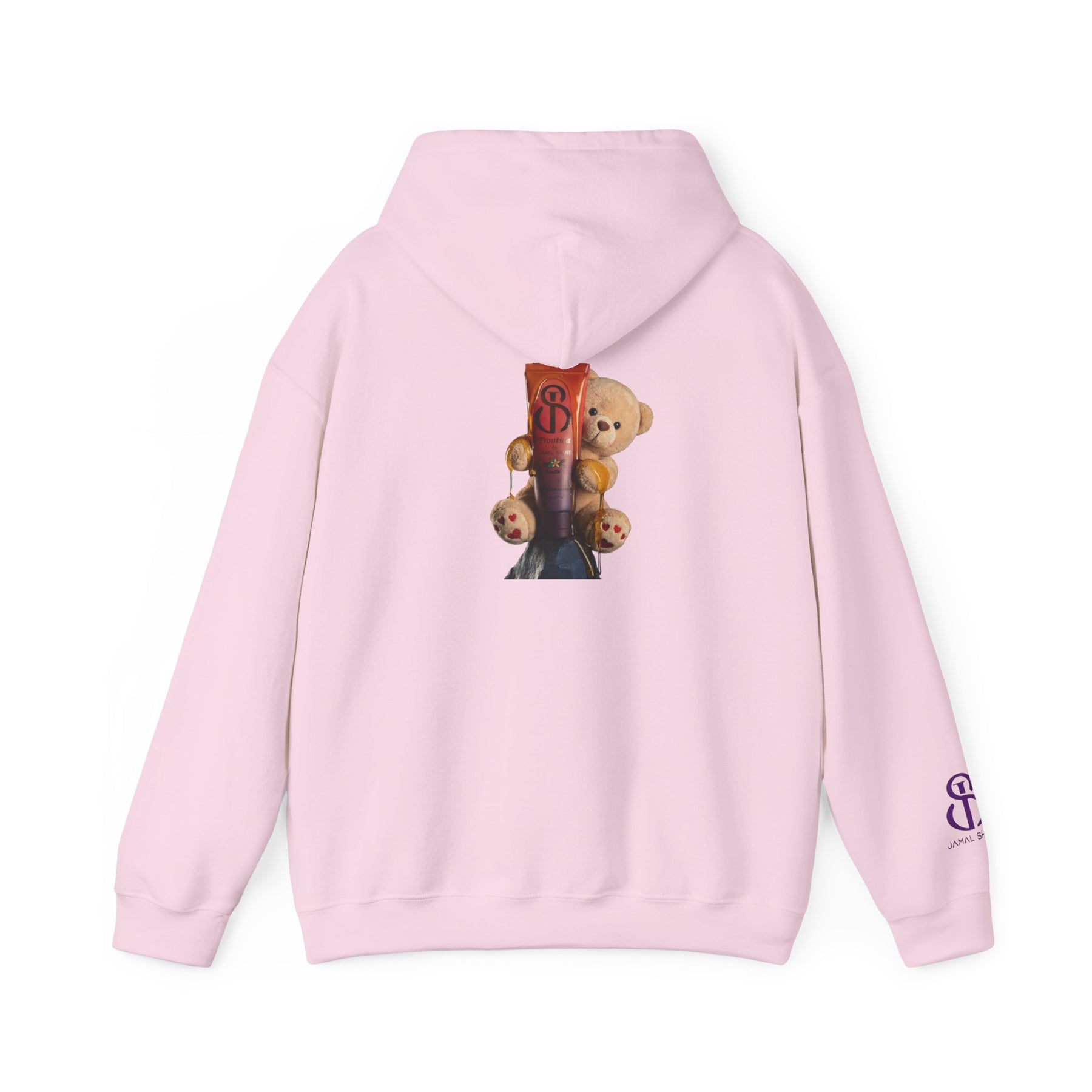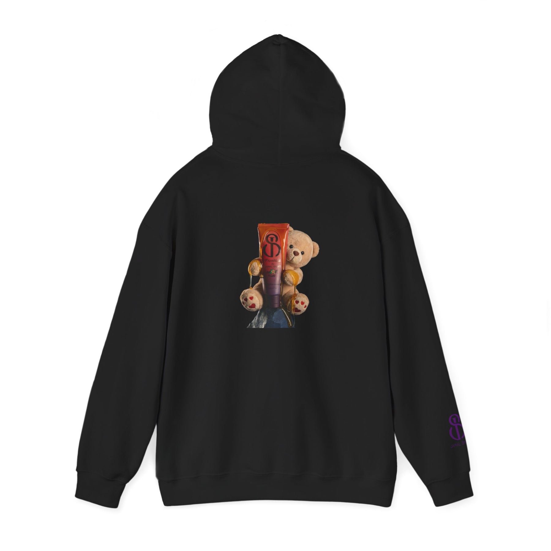 This hoodie is your everyday essential with a signature JS twist—cozy, durable, and designed to look clean from the front while making a statement from the back. The chest keeps it minimal with the JS monogram, and the sleeve adds an extra branded touch. Turn around and the vibe shifts: the teddy graphic featuring the JS-marked product tube brings playful personality that still feels premium and intentional.