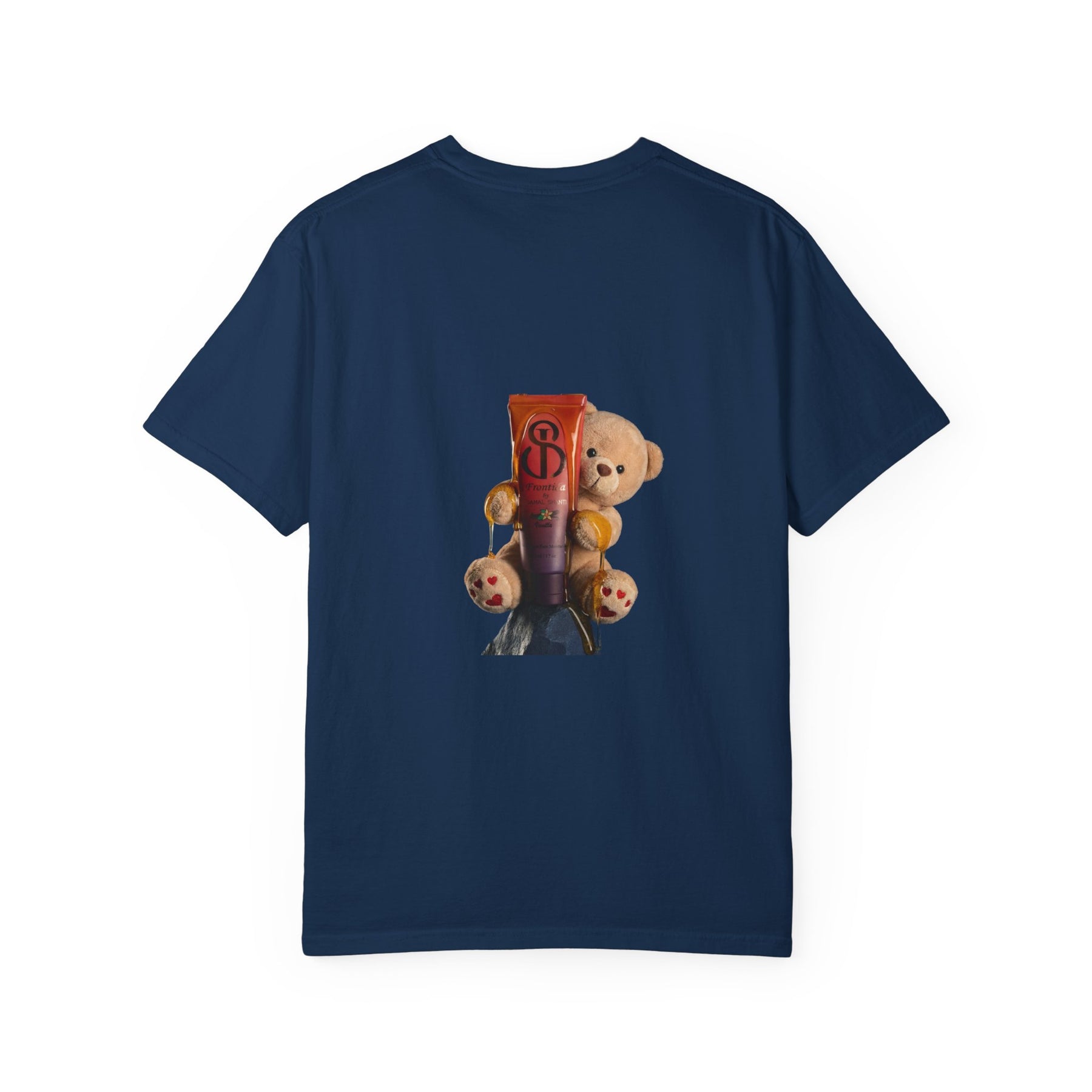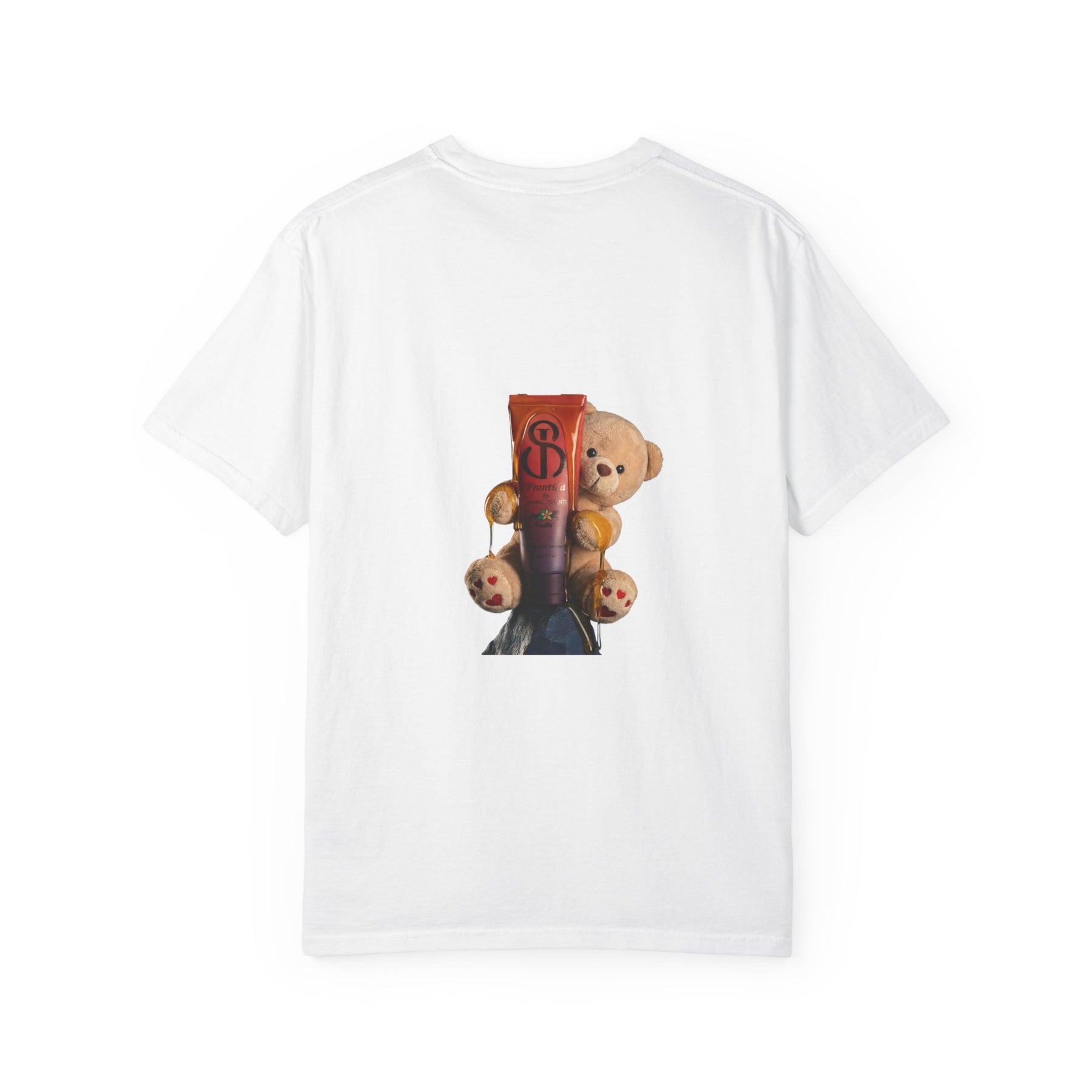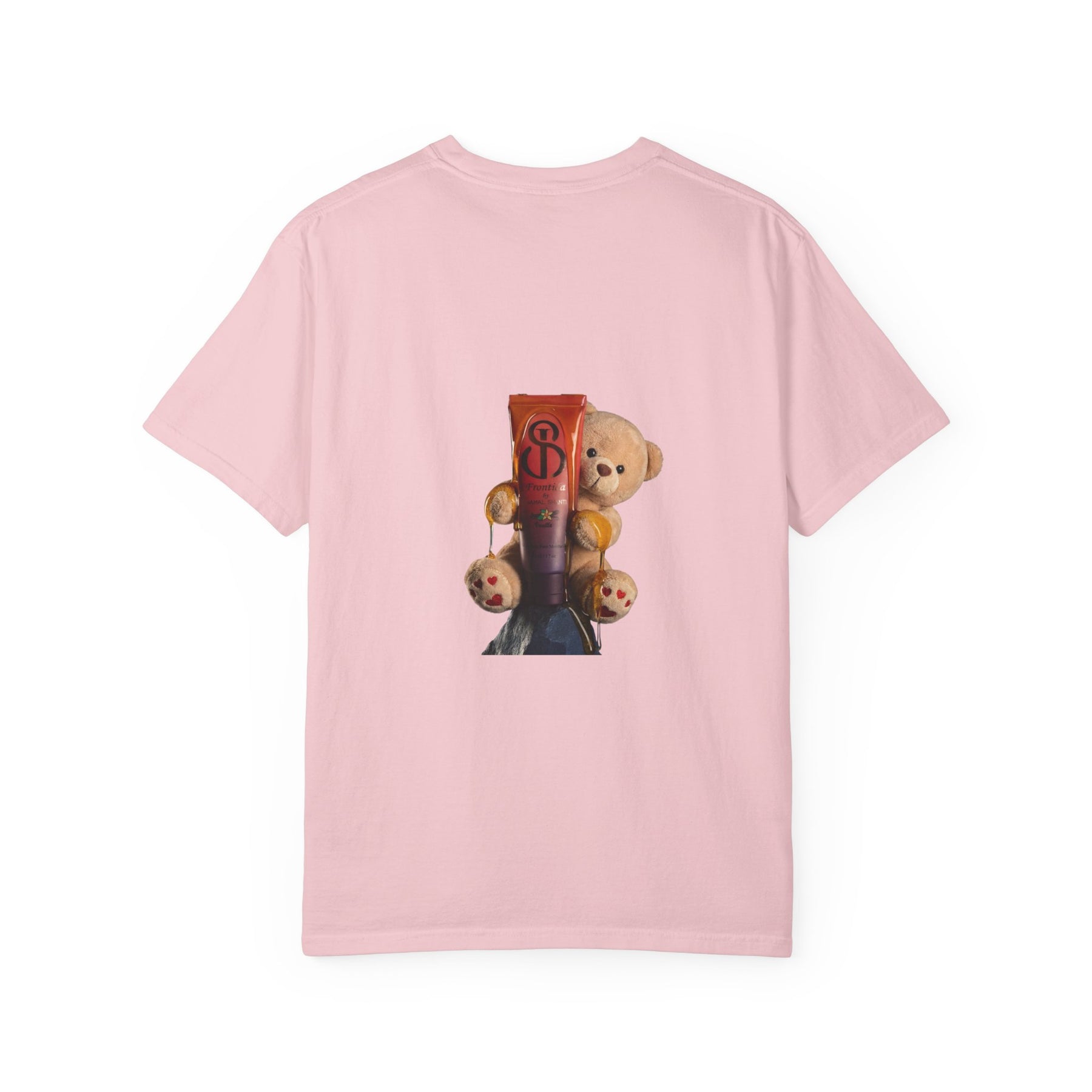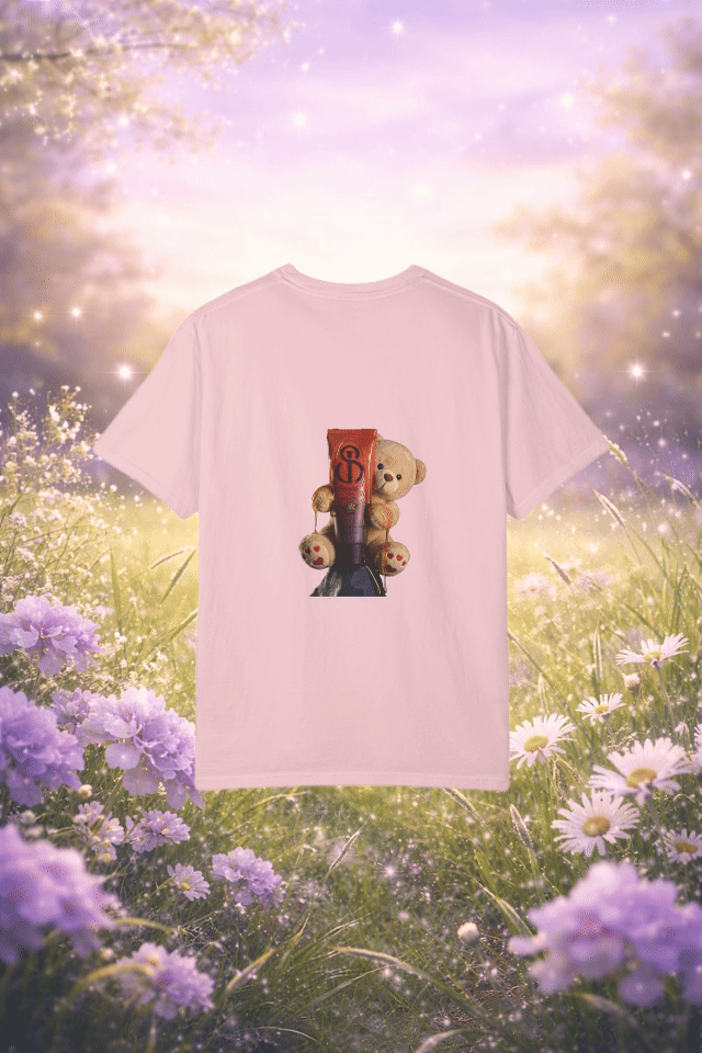 This heavyweight, garment-dyed tee is made to feel like an instant favorite—soft from the first wear, durable enough for everyday rotation, and relaxed in all the right ways. A clean JS monogram on the chest keeps the front minimal and elevated, while the back makes the statement: a playful teddy graphic featuring the JS-marked skincare tube, turning the shirt into a signature piece that’s cute, bold, and unmistakably branded.